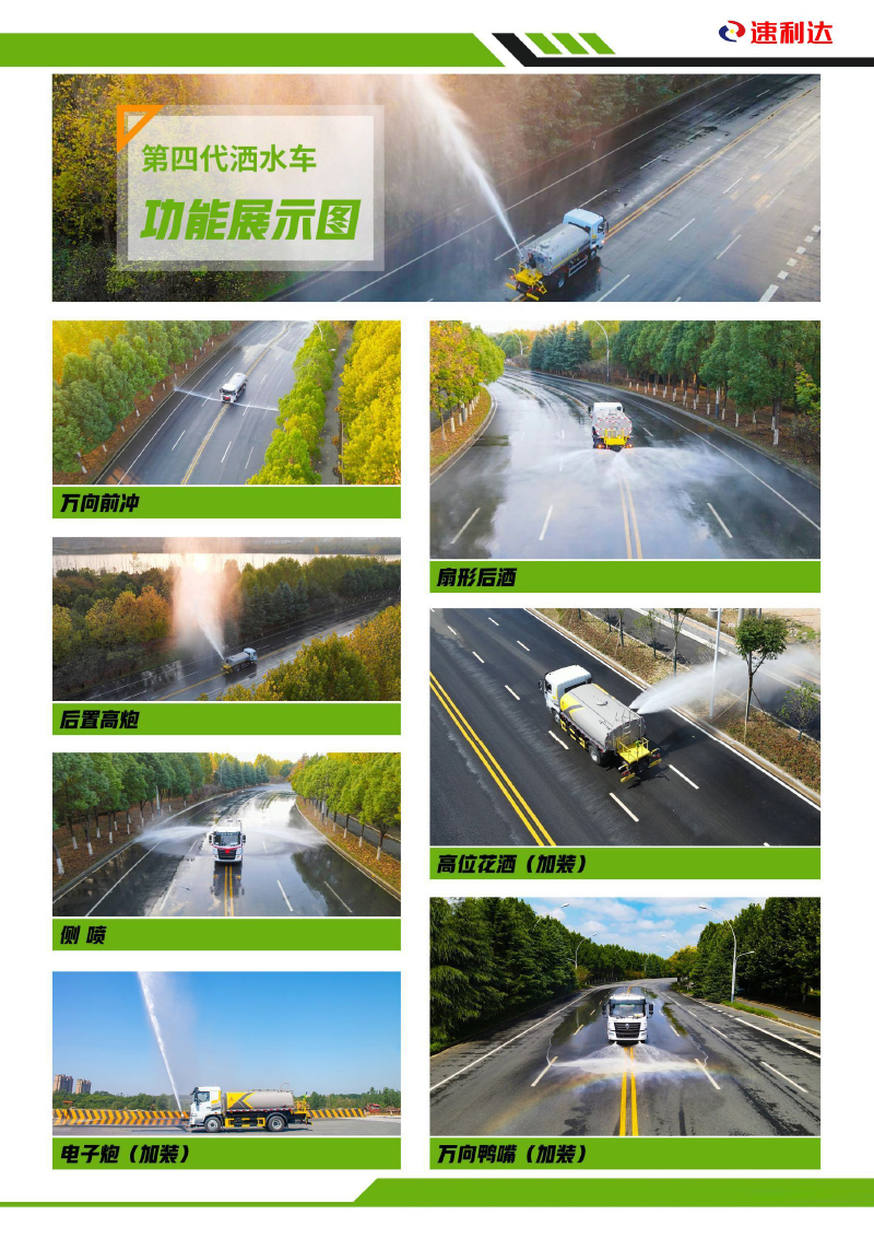 ● 采用專用定制版大功率水泵,具有性能優(yōu)良、工作可靠、效率高、流量大、等特點(diǎn),前沖可達(dá)雙向8車道,后灑可達(dá)雙向4車道,高炮最大可達(dá)40米射程。